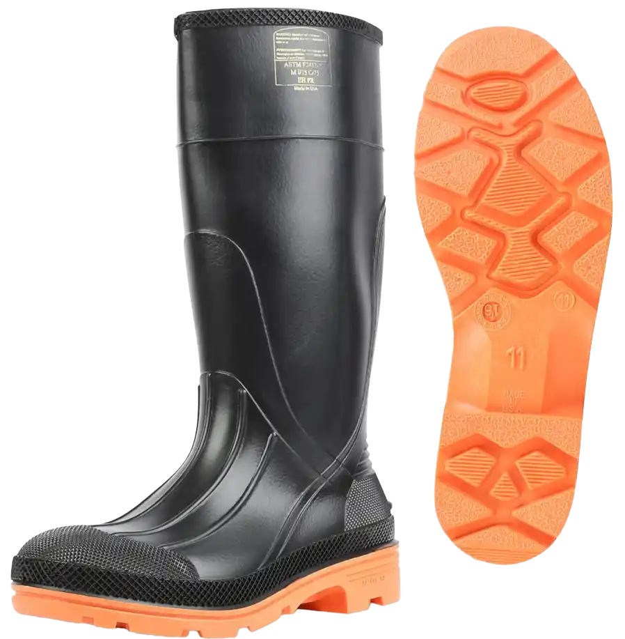 - Seamless, PVC injection molded footwear is 100% waterproof to ensure workers’ feet are dry and comfortable